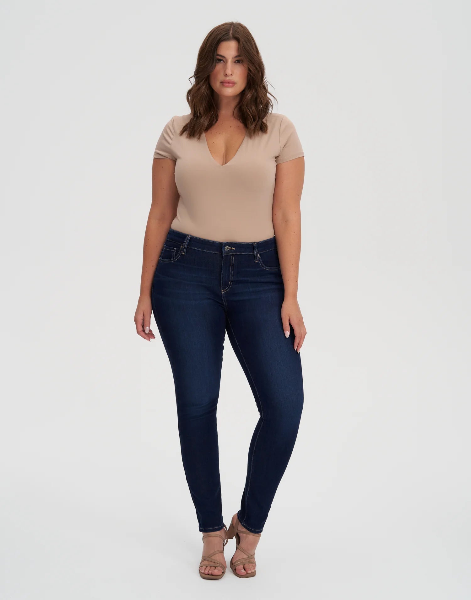Rachel, notre jean coupe étroite, est ajustée à partir des hanches jusqu'aux chevilles épousant parfaitement les formes du corps.
