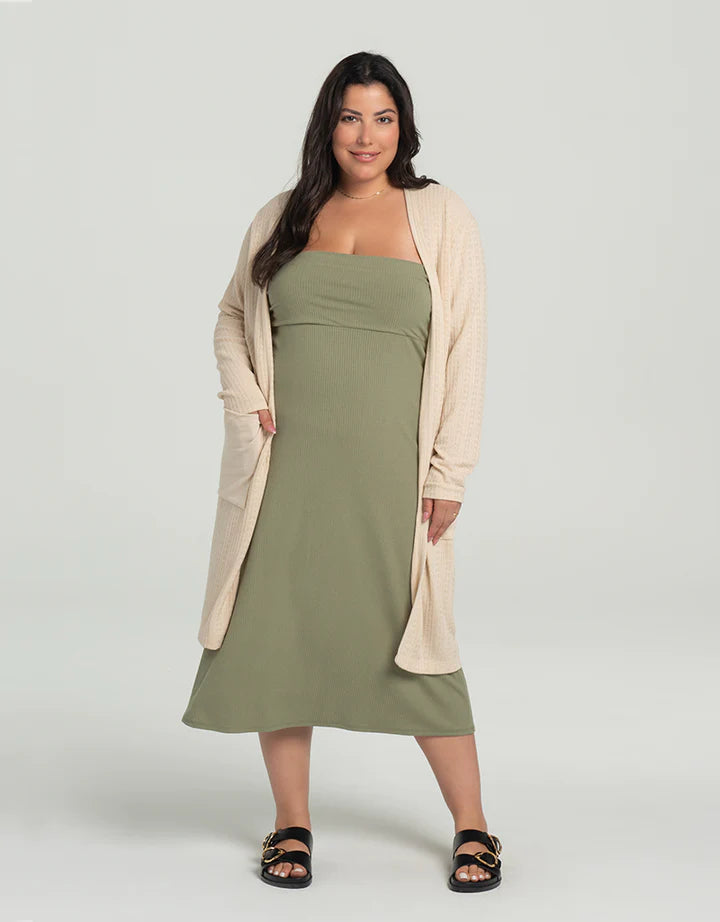 Ne faites plus le choix entre une robe et une jupe, optez plutôt pour une option hybride qui vous donne le meilleur des deux mondes. Cass est l’option parfaite du quotidien, pour bien profiter des jours ensoleillés. Ce morceau polyvalent passe aisément d’un événement à l’autre tout en demeurant confortable, que vous la portiez en jupe ou en robe. Offerte dans une douce teinte chaude, elle ajoute de la lumière à vos tenues sans être trop éclatante, vous offrant un look élégant et délicat. Fait d’un tricot-côte de bambou, cette merveilleuse pièce vous offre simplement un confort impeccable, que vous ne pourrez résister. Il s’agit d’une pièce parfaite à mettre dans un sac de voyage ou une valise alors qu’elle vous offre des options de styles distincts pour profiter de chaque moment avec style! N’hésitez pas un instant et laissez mama Cass vous bercer dans sa douce étreinte!
