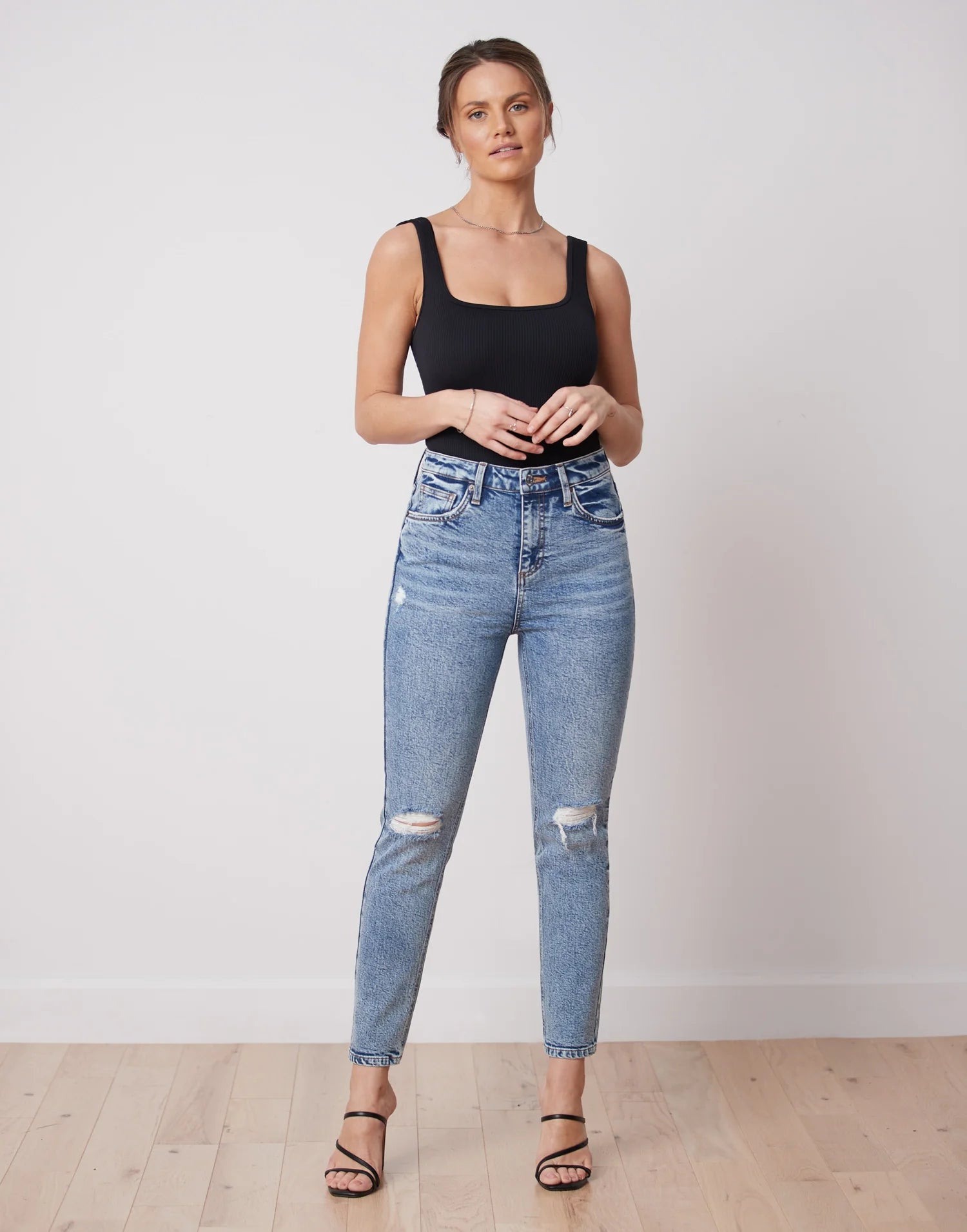 Emily, notre jean coupe ajustée, s'inspire des mom jeans pour un ajustement parfait autour des hanches et une coupe fuselée sur toute la jambe.