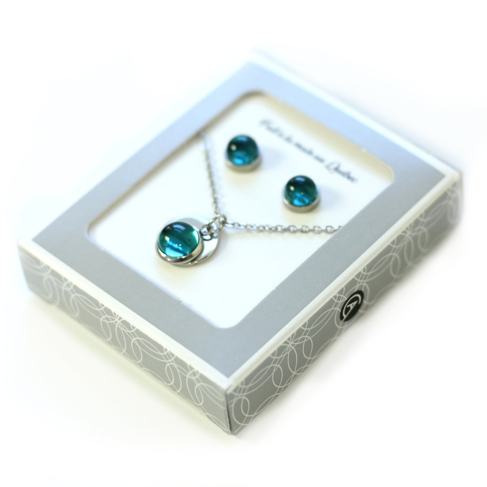 Ensemble médaillon aqua (Pendentif et boucles d'oreilles) - Créart