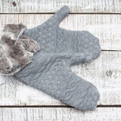 Mitaine d’hiver pour dame tricot torsadé gris