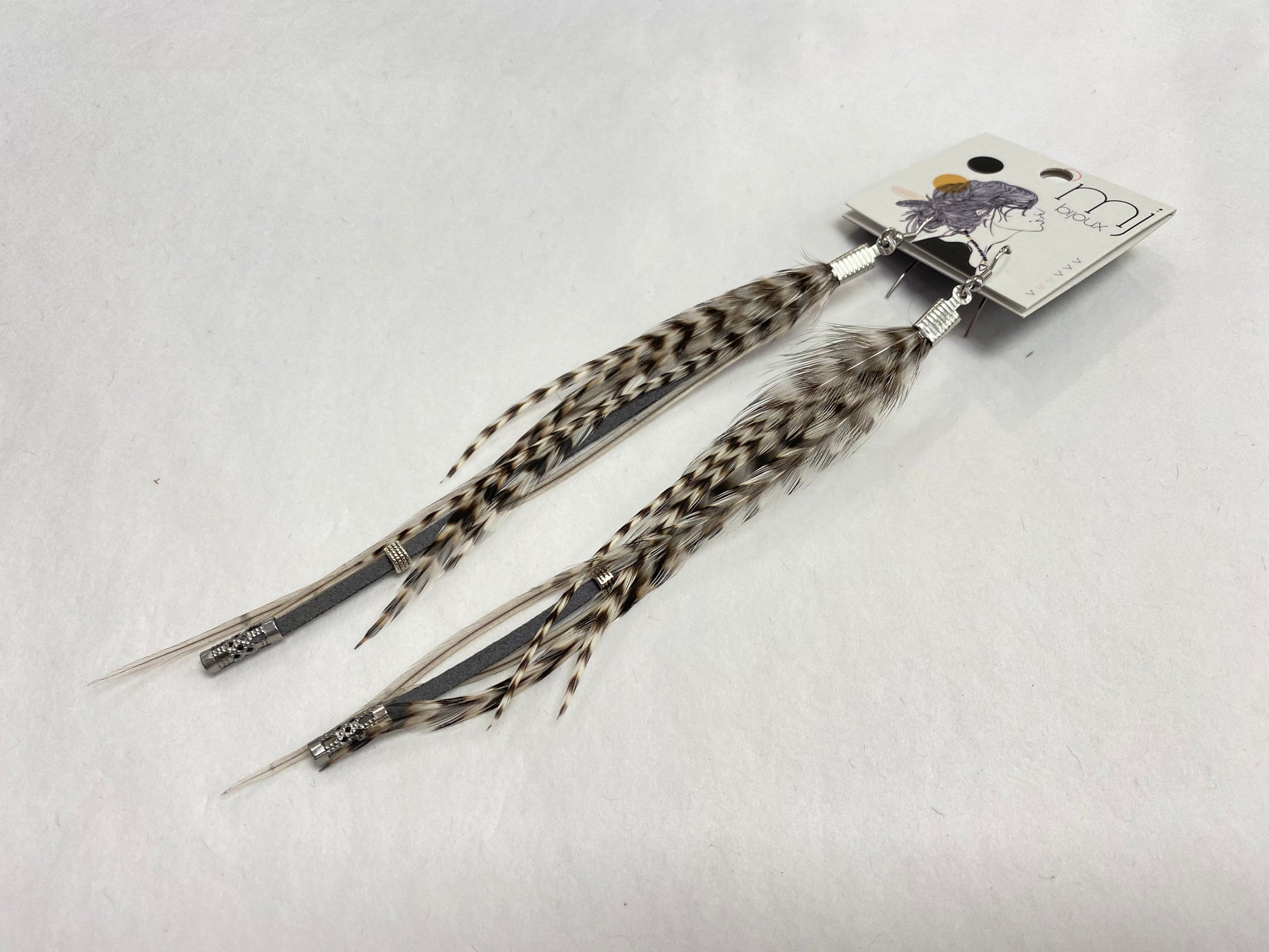Boucle d'oreille en plume avec attache d'acier inoxydable.