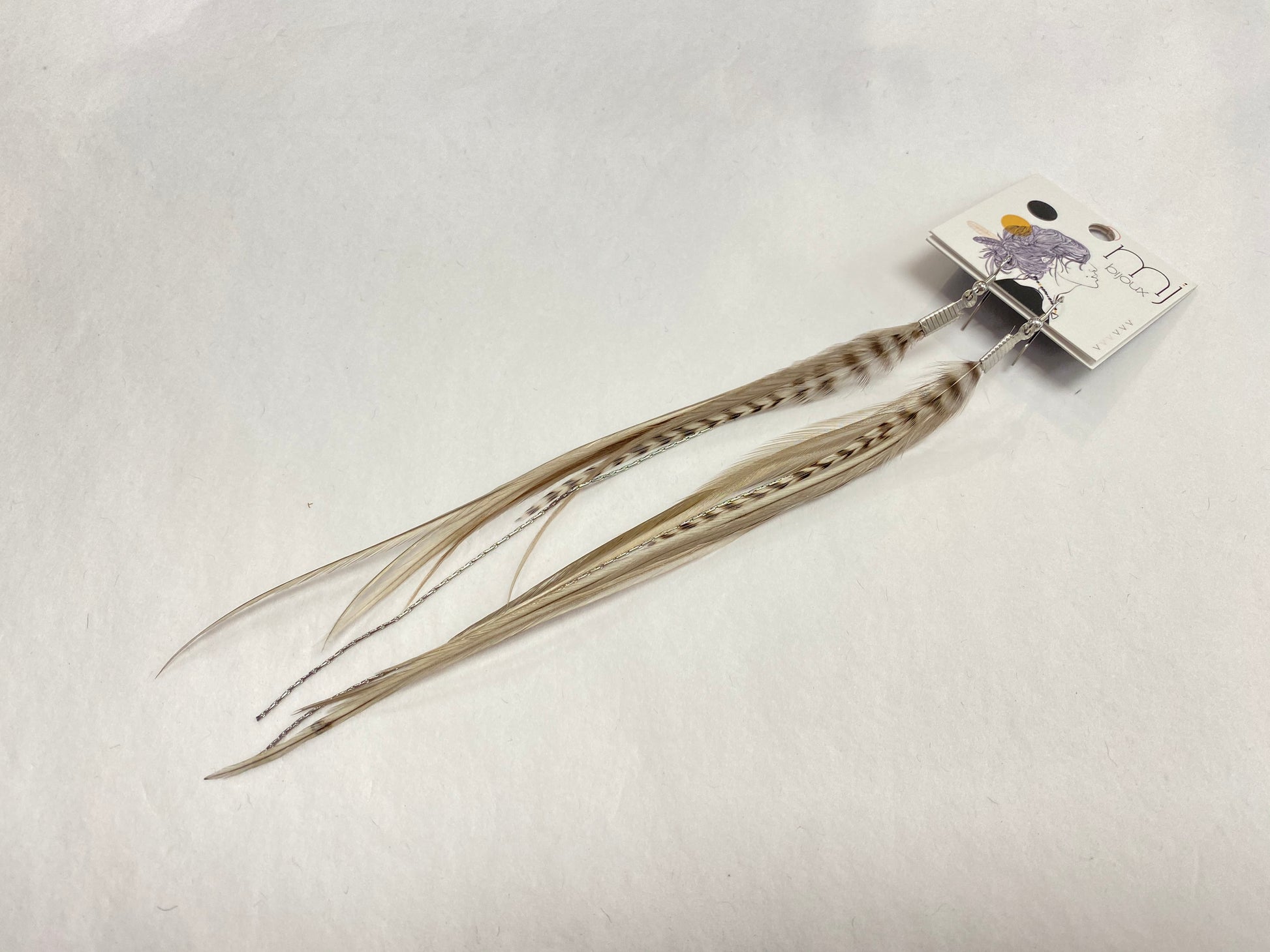 Boucle d'oreille en plume avec attache d'acier inoxydable.