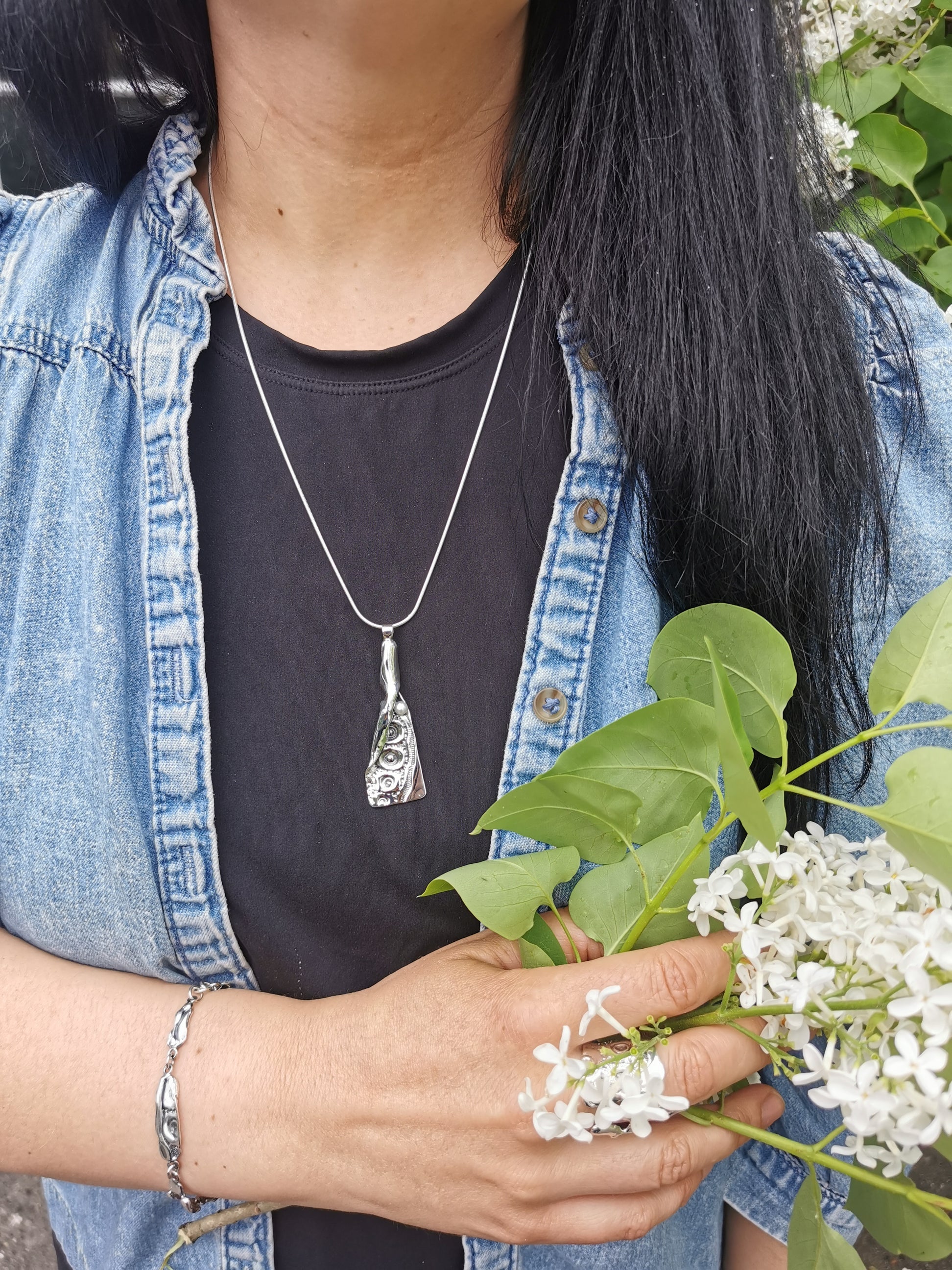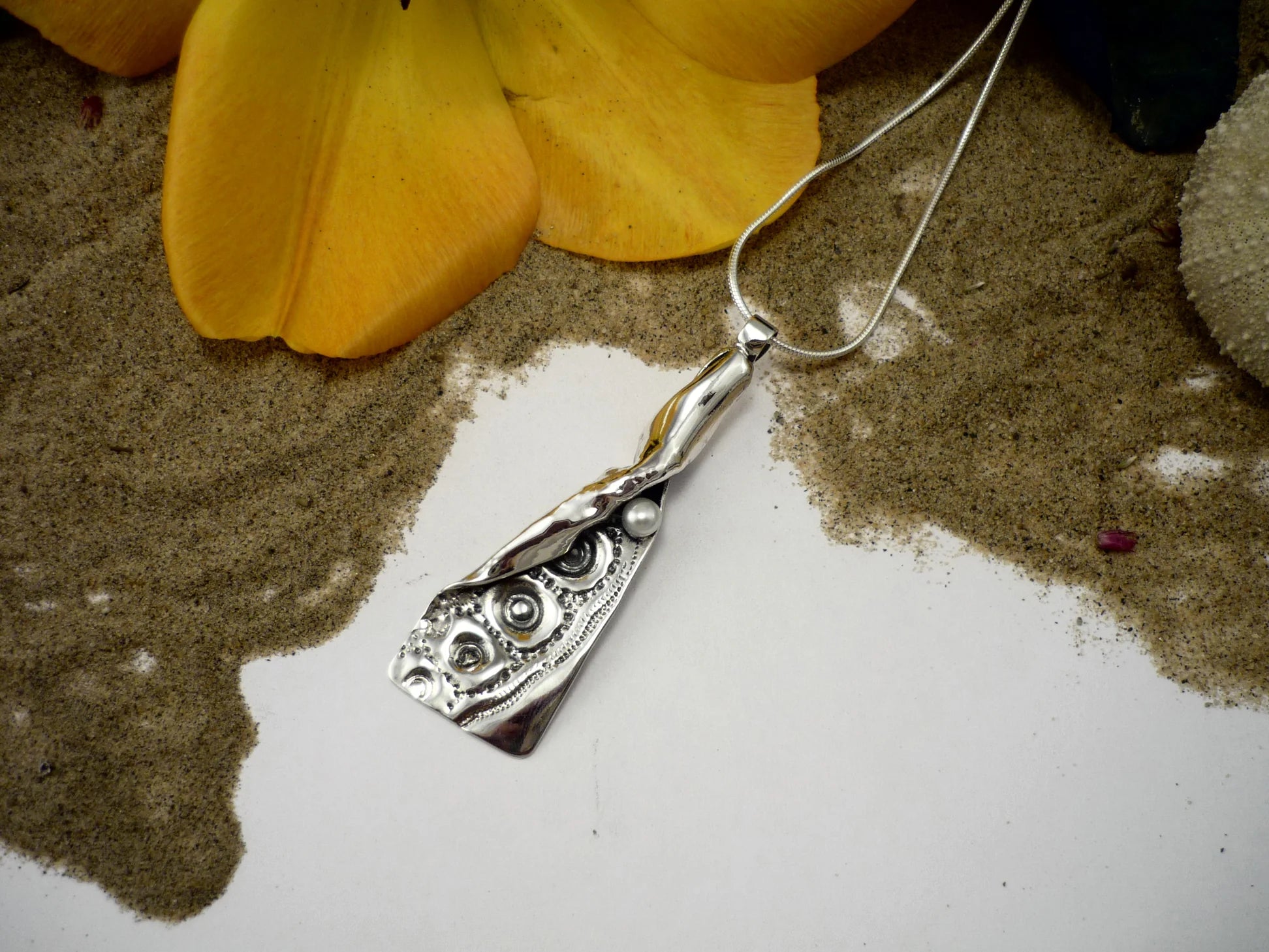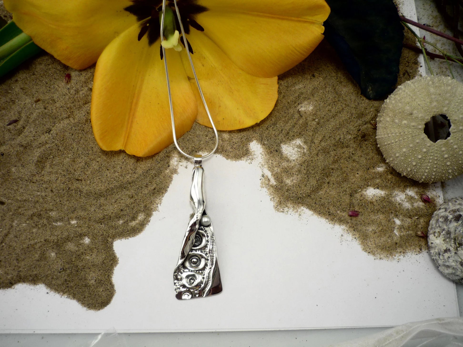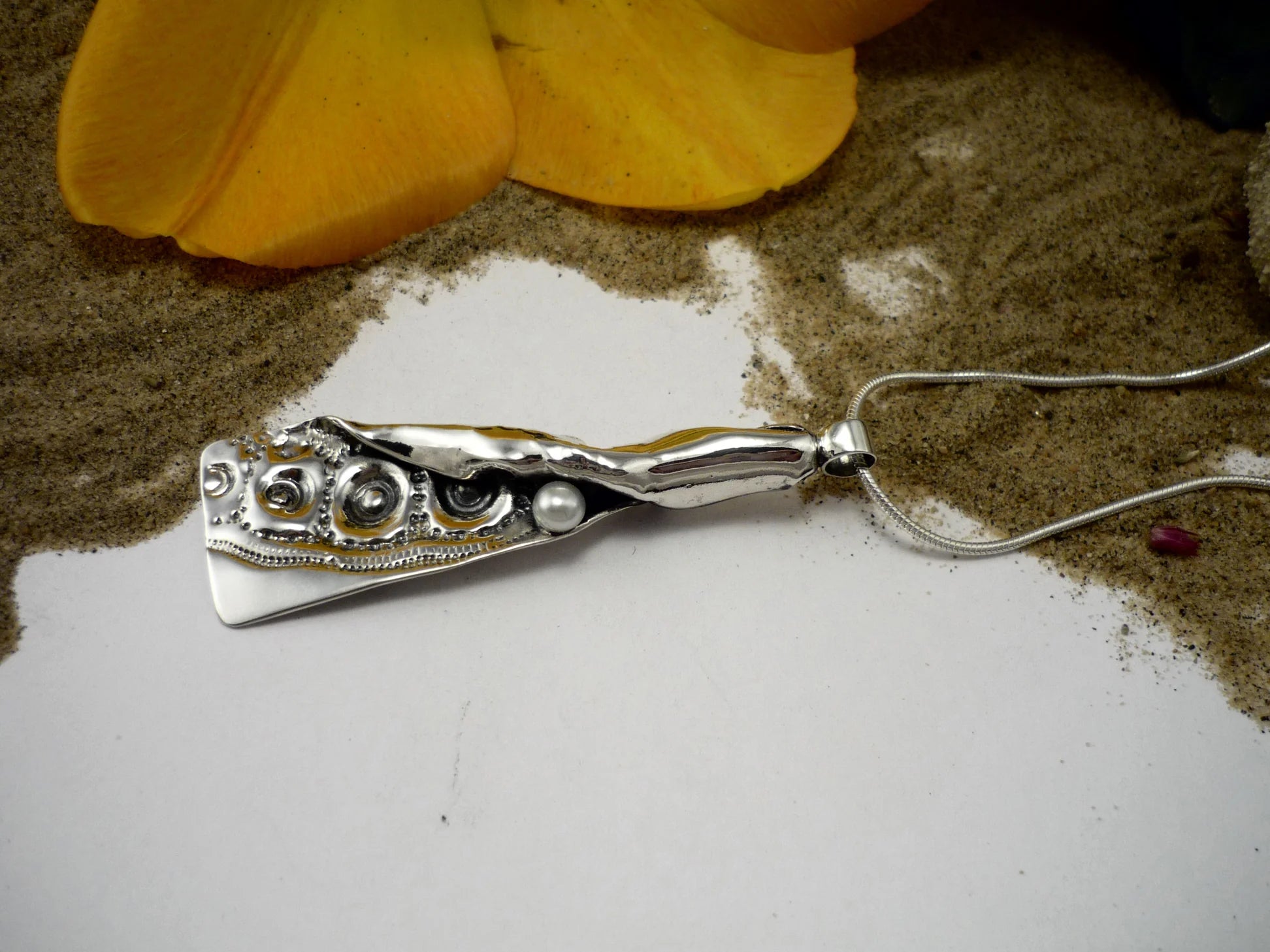Nacre et oursin perlé, pendentif unique inspiré du bord de la mer - bijou en argent sterling avec texture d'oursin de mer