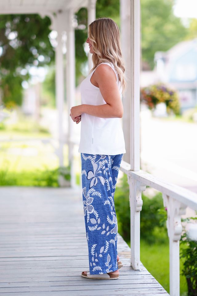 Fabriqué dans un tissu extensible et infroissable, le palazo coco sera apprécié des femmes les plus actives... ou festives! Sa bande de taille large élastique assure un confort optimal et le fait tenir bien en place tout au long de la journée. Disponible en trois motifs et couleurs distincts, ce palazo décontracté est si polyvalent qu'il convient aussi bien à vos tenues de voyage, qu'à celles du travail ou de sorties relaxes. Plusieurs d’entre vous se sont procuré nos très populaires palazos rumba à l’été 2025. Sachez que le palazo coco est exactement taillé dans le même patron.