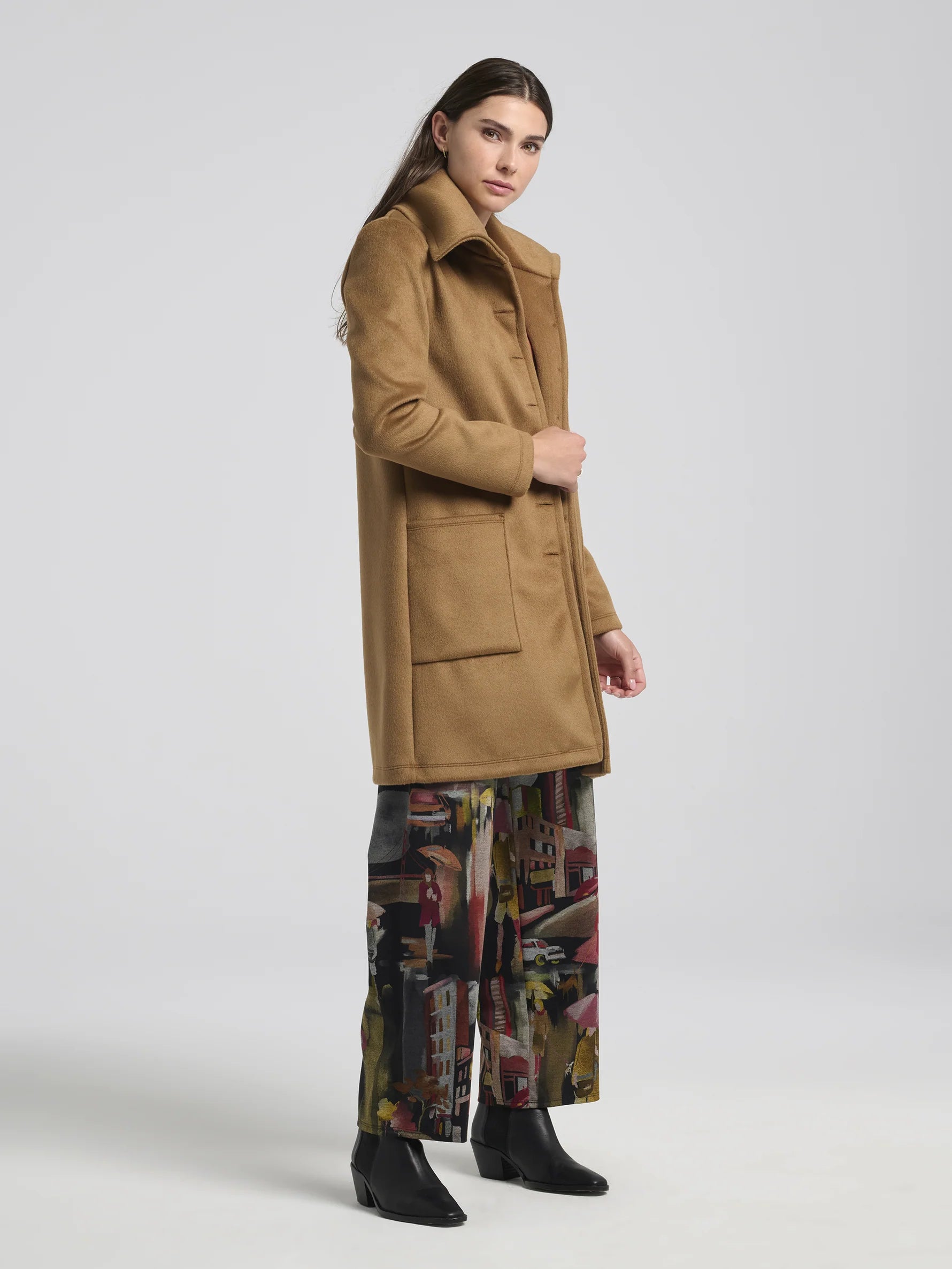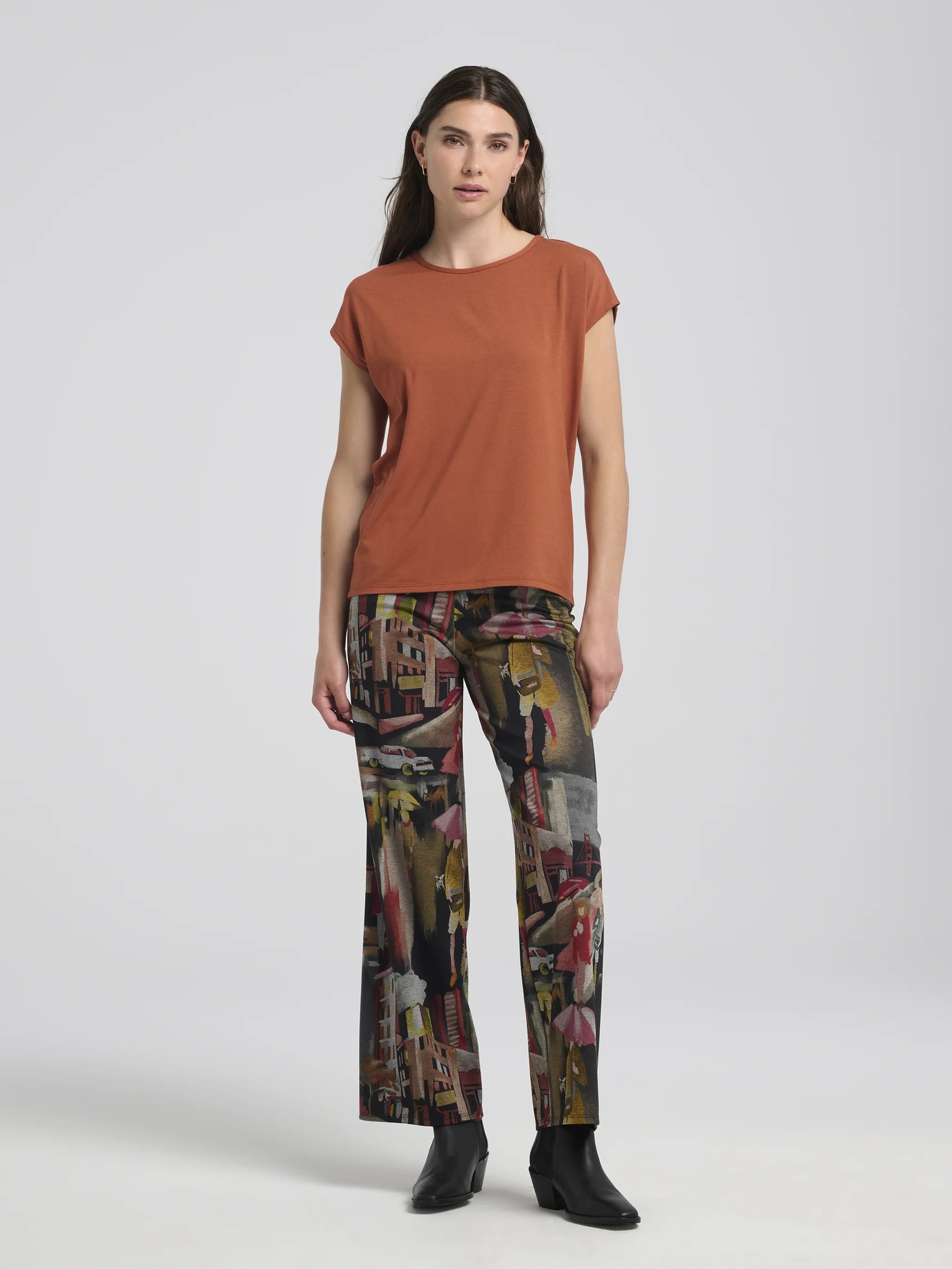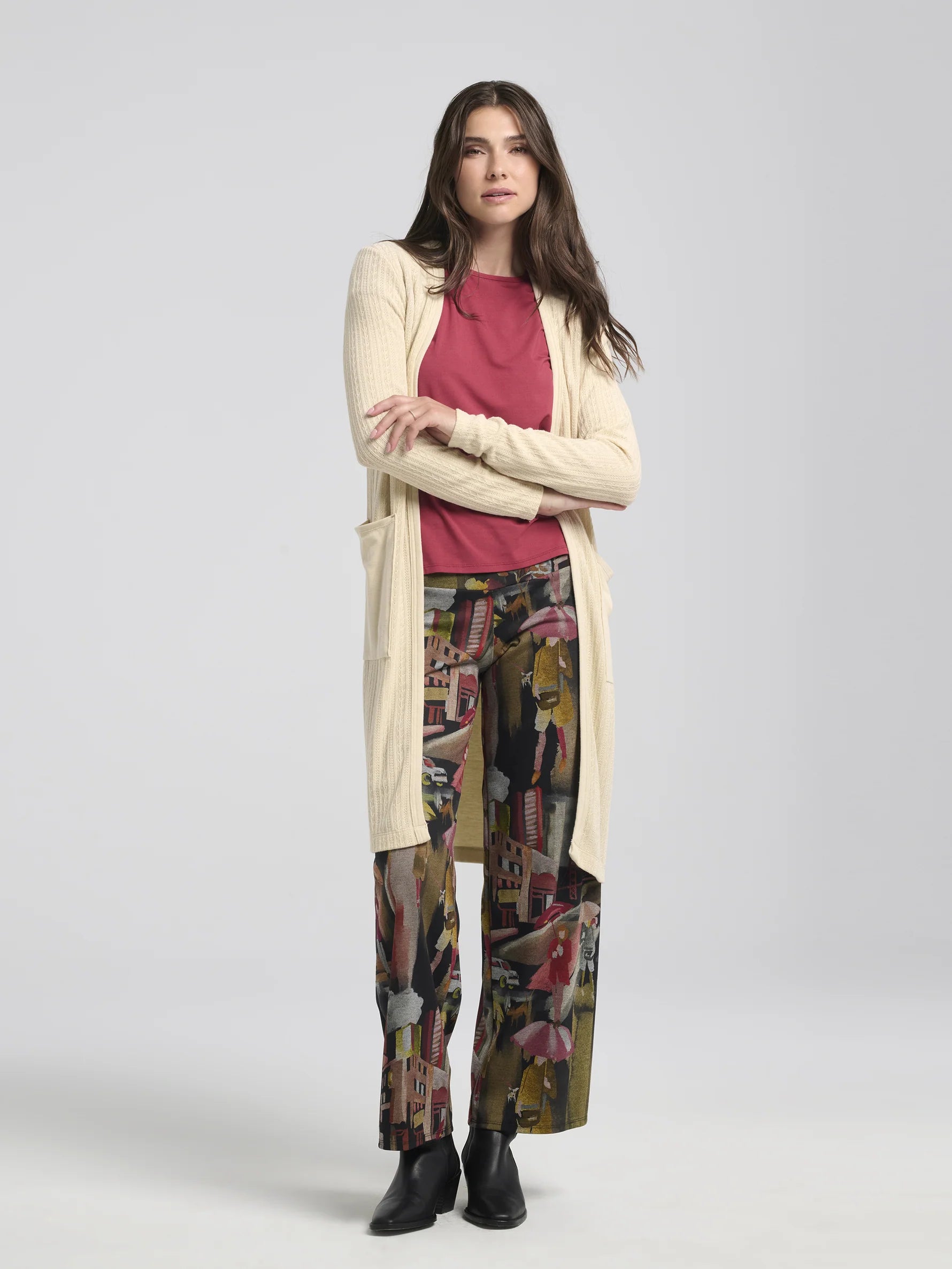Laissez le pantalon Joanna vous emmener en voyage, même si ce n'est que pour une balade en ville un jour de pluie. Entièrement réalisé dans notre imprimé italien, ce pantalon droit offre une structure impeccable qui met en valeur chaque détail de ce tissu unique. Avec sa coupe droite, Joanna permet à l'imprimé de s'exprimer pleinement, transformant chaque pas en une exploration visuelle. Ce vêtement est une véritable collaboration entre l'art textile italien et le savoir-faire montréalais, apportant ainsi une pièce exceptionnelle à votre garde-robe.