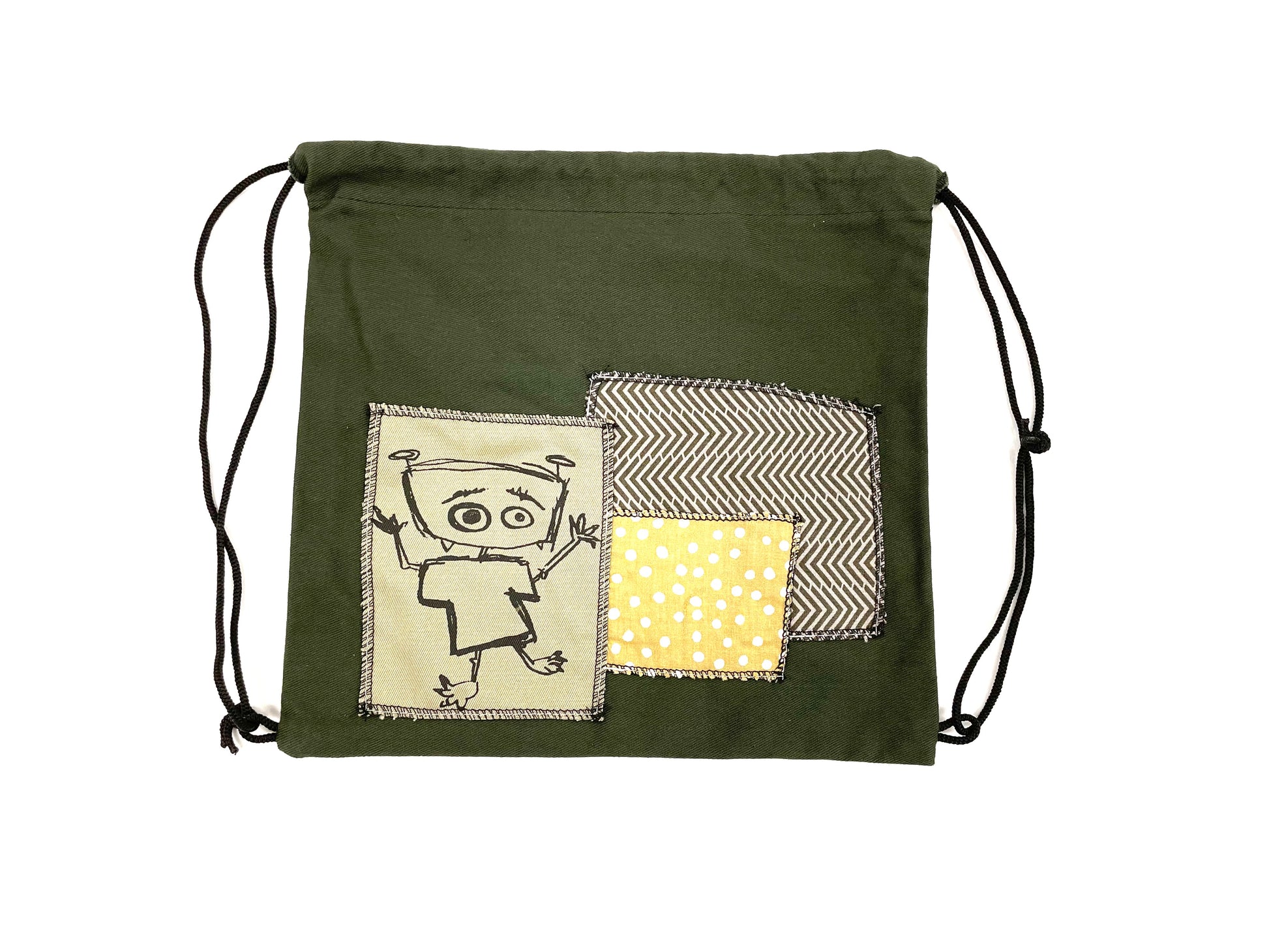 Petit sac à dos baluchon pour enfant. Tirez de chaque côté pour fermer.