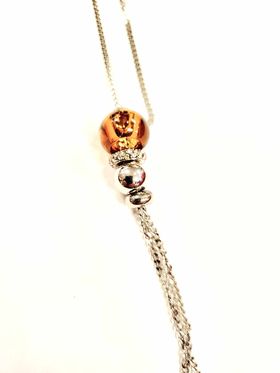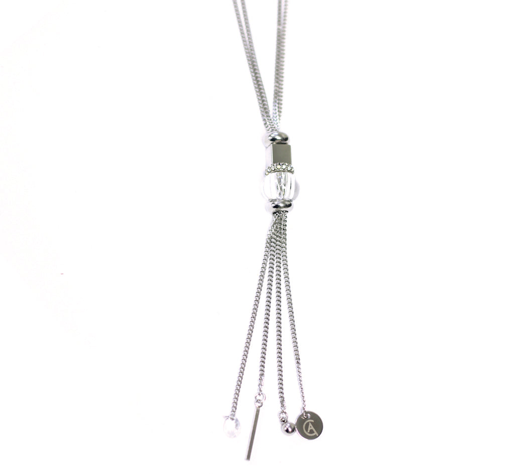 Sautoir ajustable sur chaîne double en acier inoxydable avec perle de verre.