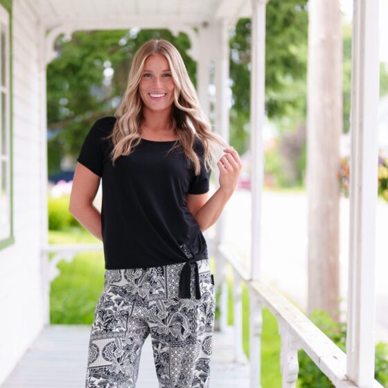 Le t-shirt tropical, en trois mots, c’est : couleur, douceur, candeur. Avec son nœud sur le côté et son tissu doux et extensible, il mise sur la simplicité pour mieux mettre en valeur votre éclat naturel. Un haut uni, mais loin d’être ordinaire! Si vous avez déjà acheté le t-shirt moderne à l’été 2025, sachez que c’est exactement le même patron. On a tout simplement changé le nom et le tissu pour un tissu tout aussi doux.