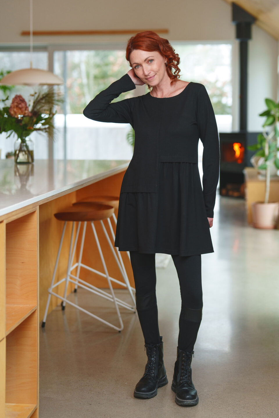 Poursuivez votre quête de confort en portant votre tunique argousier merlot ou noir avec nos leggings taïga merlot, tsuga noir, saule noir ou laricin floral. Elle s’agence également parfaitement bien avec notre boléro-poncho lupin et notre pantalon resinosa noir.