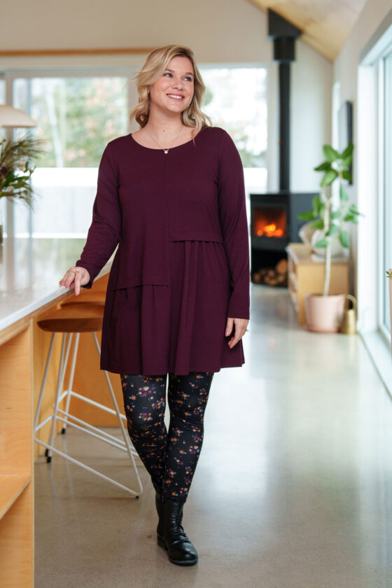 Poursuivez votre quête de confort en portant votre tunique argousier merlot ou noir avec nos leggings taïga merlot, tsuga noir, saule noir ou laricin floral. Elle s’agence également parfaitement bien avec notre boléro-poncho lupin et notre pantalon resinosa noir.