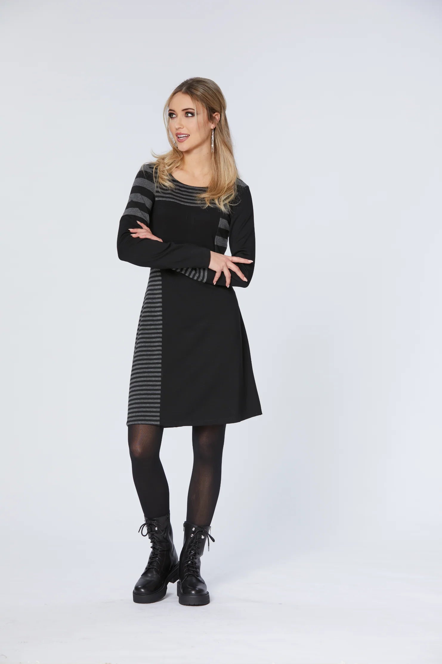 Robe noire élégante à manches longues, idéale pour un look sophistiqué et moderne.