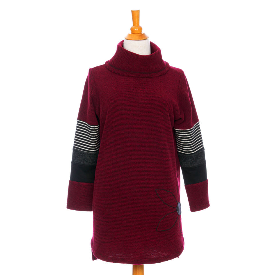 Idéale pour affronter la saison froide ou se prélasser devant un feu de foyer, la tunique églantier est un hymne à la flore nordique, empreint de confort et de style intemporel. Sa broderie florale ornée d’un centre en faux-cuir, sa poche latérale, son jeu de colorblock audacieux sur les manches et son doux tissu bordeaux en font une pièce d’exception. Jeter un oeil sur cette tunique au bas arrondi, c’est admirer une oeuvre des plus belles. À vous de la porter et de la rendre encore plus belle, à votre façon.