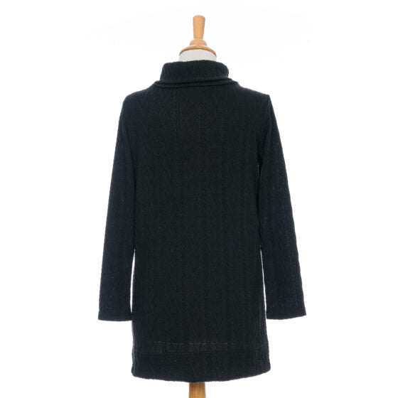 Comme un livre qui invite à l'évasion, la tunique marguerite vous transporte dans un ailleurs empreint de sérénité. Son imprimé de marguerites délicatement posées sur une douillette couverture évoque la quiétude d'une session de lecture relaxante au coeur de l'automne. C’est d’ailleurs le sol automnal velouté qui a inspiré la texture originale du confortable tissu noir dans lequel sont taillés le dos, le col et les manches de cette réconfortante tunique. Au bas est taillée une fente sur chaque côté pour vous permettre d’adopter votre position de lecture bien à vous, quelle qu’elle soit.