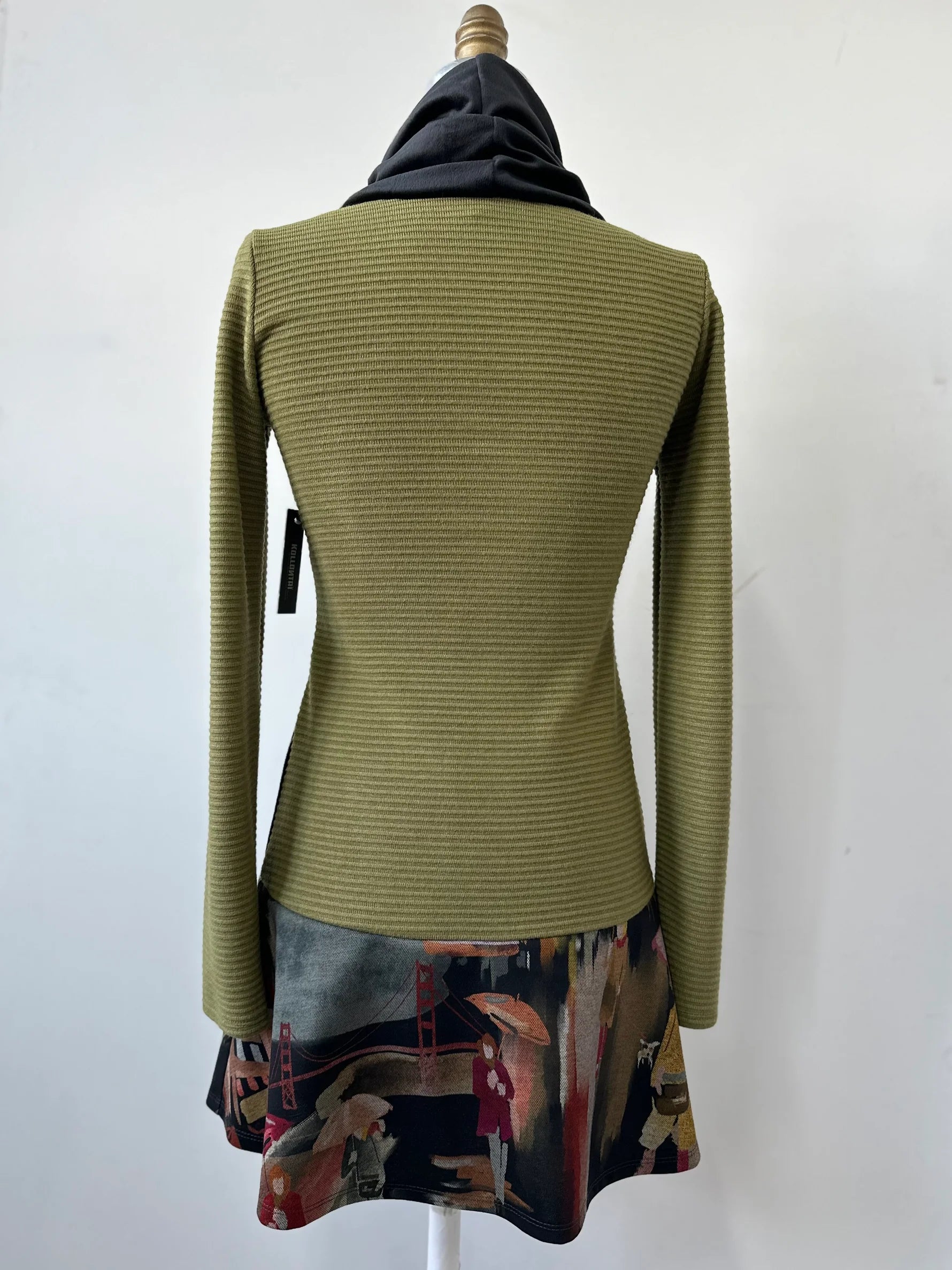 Préparez-vous à affronter la journée avec style grâce à la tunique Toni, où l'art du patchwork rencontre l'élégance italienne. Ce mélange subtil entre notre imprimé coloré et un tissu vert olive texturé crée une pièce aussi unique que vous. Avec sa coupe en ligne A, cette tunique vous garde au chaud et confortable tout en soulignant délicatement vos courbes naturelles. Les empiècements angulaires ajoutent une touche dynamique qui transforme chaque mouvement en une aventure. Que vous vous promeniez sous la pluie ou que vous braviez une journée chargée, Toni est là pour vous rappeler que la vie est plus belle avec un peu de style et beaucoup de confort. Et n'oubliez pas, chaque pièce est soigneusement créée et produite par notre talentueuse équipe à Montréal.