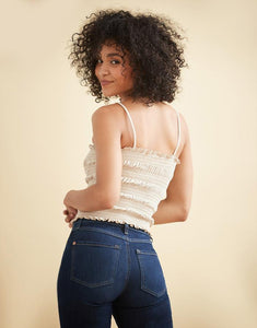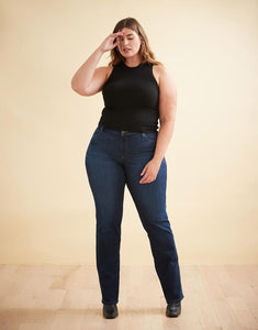 Chloé, notre jean classique coupe jambe droite, s'adapte parfaitement aux hanches et aux cuisses avec une silhouette droite du genou aux chevilles.