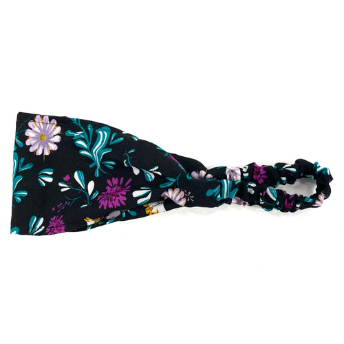 Bandeau Noir Fleurs Mauve Fushia - Rouge Canapé
