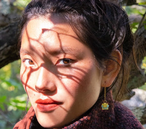Boucles d'oreilles fait de laiton et de billes artisanales.
