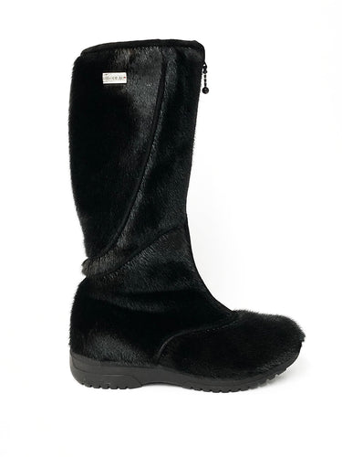 Botte Urbaine Kaminak Fourrure Loup Marin et Castor Naturel, Cuir Noir
