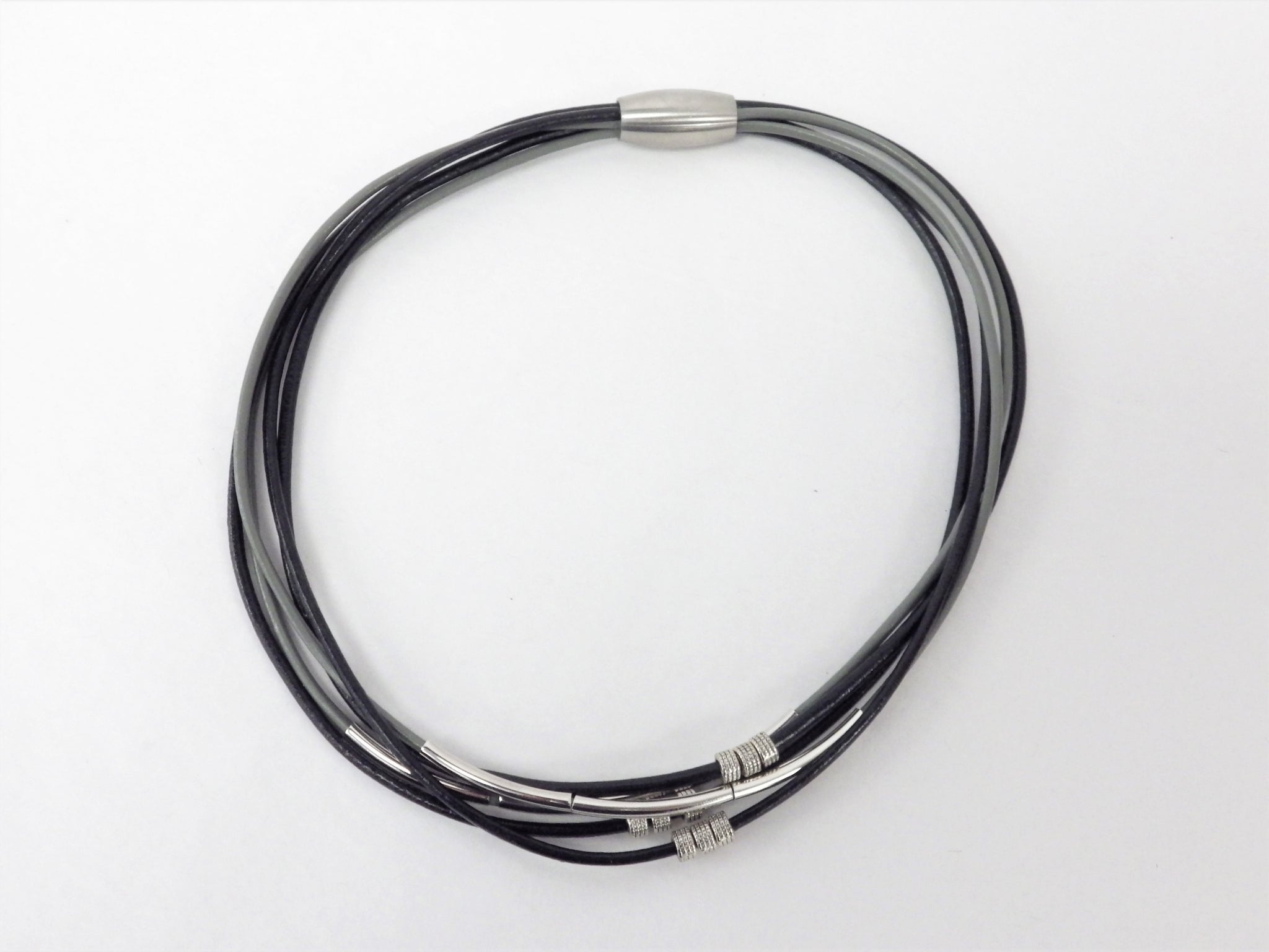 Collier/Bracelet noir et gris, tubes - MJ Bijoux