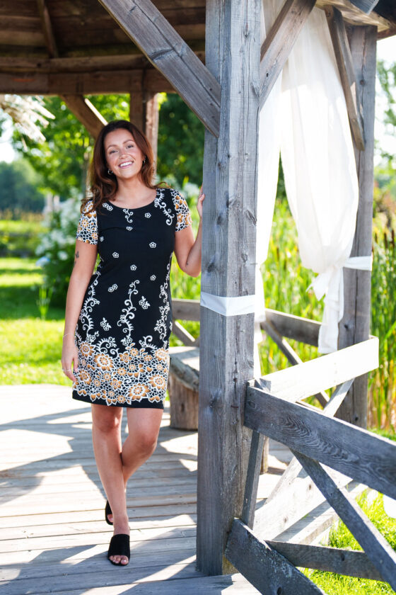 Tel un grand ballet, la robe classique est une pièce d’art tout à fait unique. Ce sont vraiment l’imprimé et son relief, en bordure au bas et sur les manches, qui donnent à cette robe semi-ajustée tout son charme. Un détail qui ne vous laissera pas indifférente est son tissu extensible et infroissable, faisant de cette petite merveille votre nouvelle partenaire favorite pour les grands événements ou pour vos plus beaux voyages.
