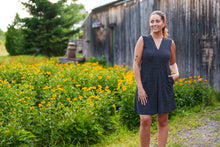 Soyez prêtes à suivre le rythme de la journée avec la robe samba, une robe trapèze sans manches dotée d'une encolure en V et d'un pli centré à l’avant combinant style et aisance et ayant un effet camouflant fort apprécié. Les poches discrètes sur les côtés ajoutent une touche pratique, tandis que les épaules larges cachent élégamment les formes que l’on préfère parfois couvrir dans le haut des bras. Confectionnée dans un tissu extensible, elle est aussi chic pour le bureau que mignonne pour une sortie en soirée ou les vacances. Une pièce incontournable alliant élégance et confort.