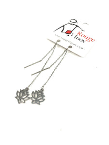 Boucles d'oreilles longues Lotus - Argent - Rouge Inox
