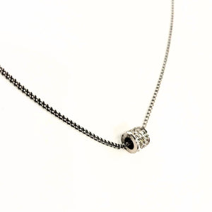Collier Inox Cylindre et Zircon - Rouge Inox