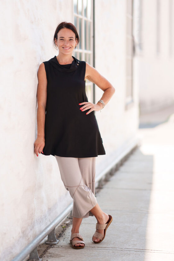 Pour lui assortir un bas, ce ne sont pas les choix qui manquent! Vous pouvez la porter pratiquement avec tous nos bas d’été. Voici quelques idées d’agencements : La version noire permet plusieurs agencements, comme avec notre palazo Hardy Sable (très élégant!), notre legging 3/4 kaki ou notre legging Lulu noir, notre legging corsaire noir et notre jupe jupon pour un look tout noir. Ce ne sont que quelques idées mais gageons que vous trouverez mille et une autres possibilités tellement elle est facile à assortir!
