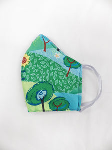 Masque non médical créé au Québec par Rouge Canapé. Arbres & tournesols