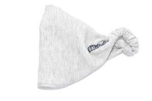 Bandeau à cheveux en coton ouaté couleur gris pâle.