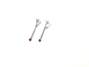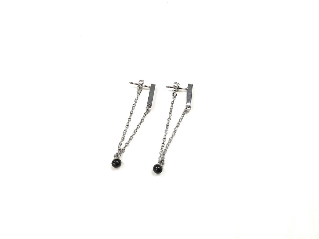 Boucle d’oreille avec petit pendentif de verre soufflé sur chaine et tige en acier inoxydable (matières hypoallergéniques). Entièrement dessinées, conçues et fabriquées au Québec.
