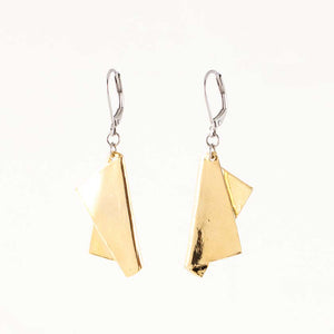 Comme deux billets doux repliés sur eux-mêmes, les ornements plaqués or brillant façonnés à la main de Manon captent la lumière et luisent délicatement au gré des mouvements de la personne qui les porte.
