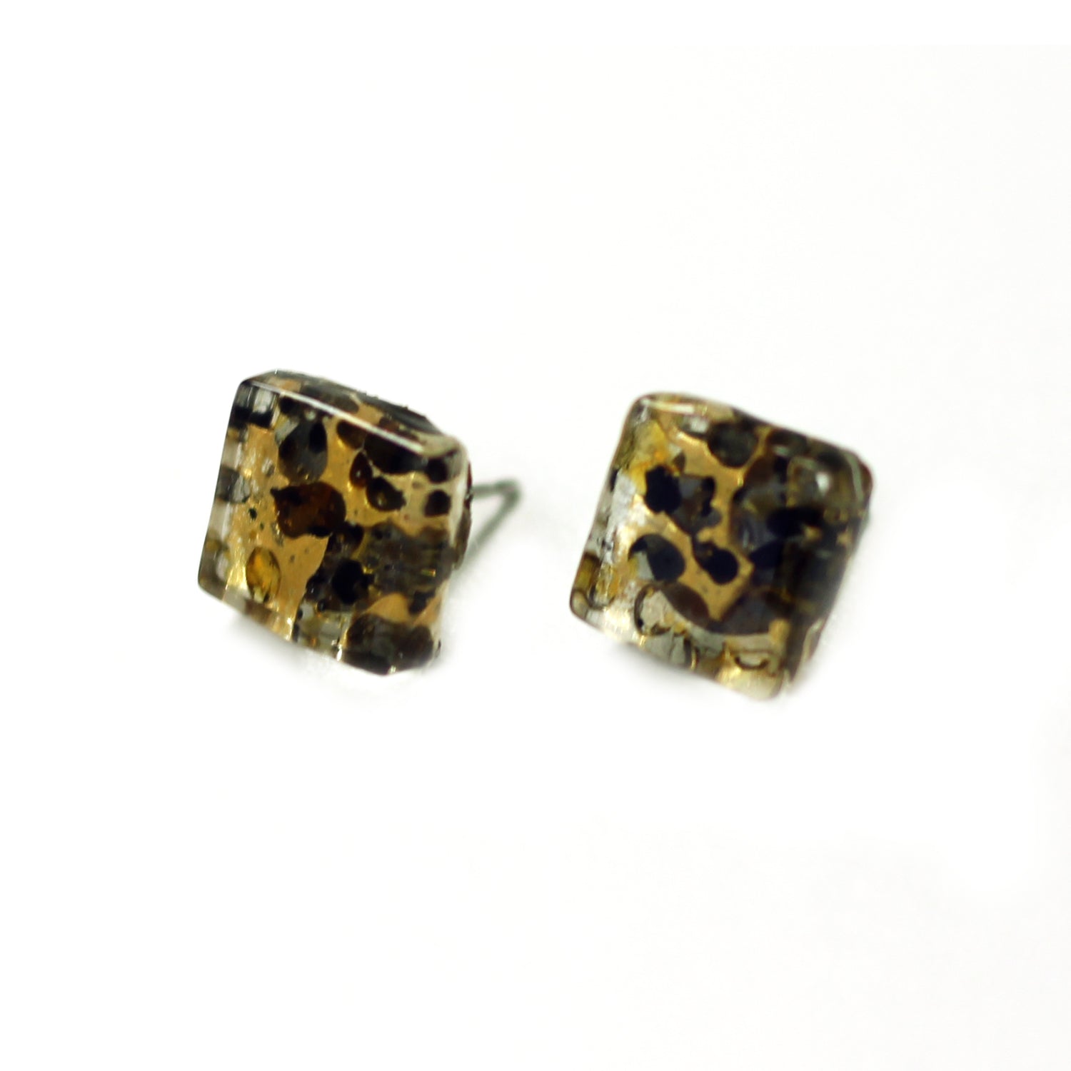 Boucle d’oreille en verre, tige et papillon en acier inoxydable (hypoallergénique).