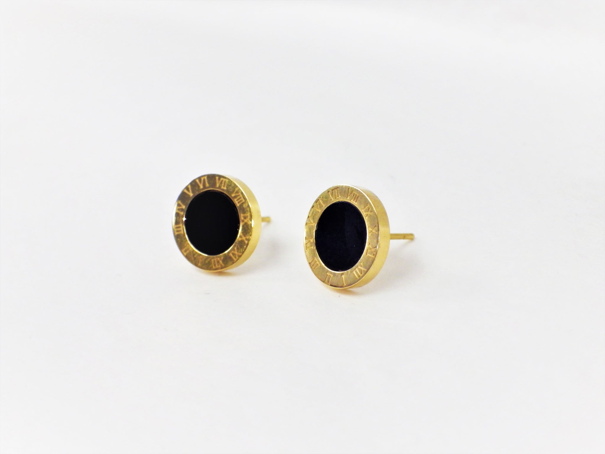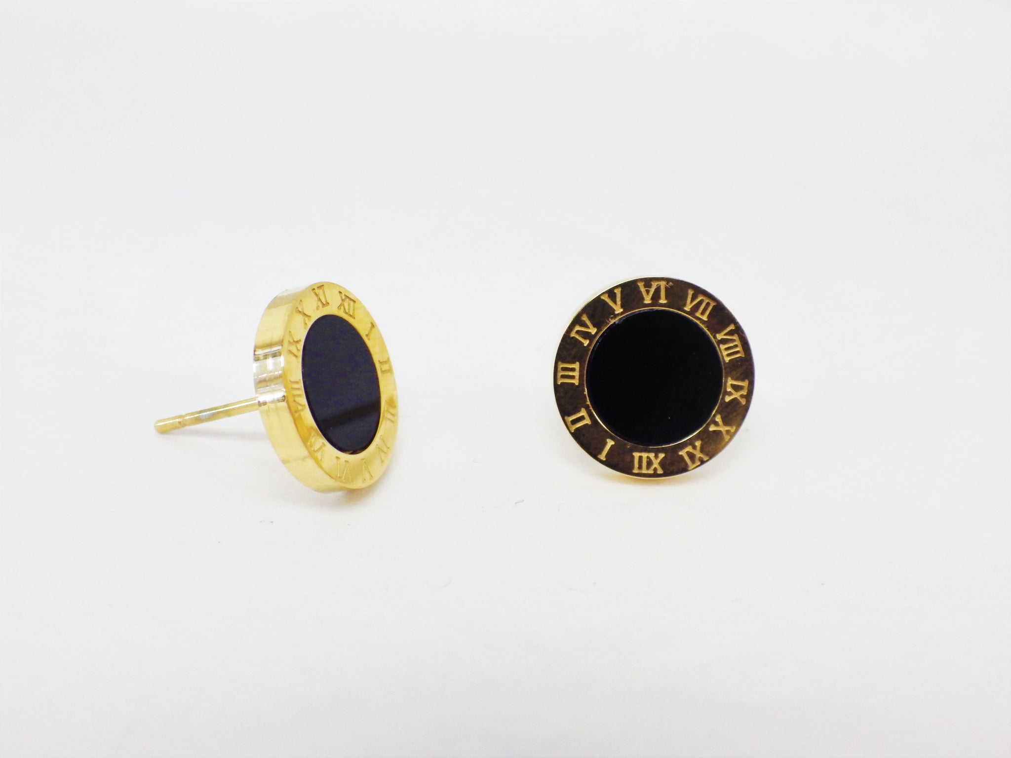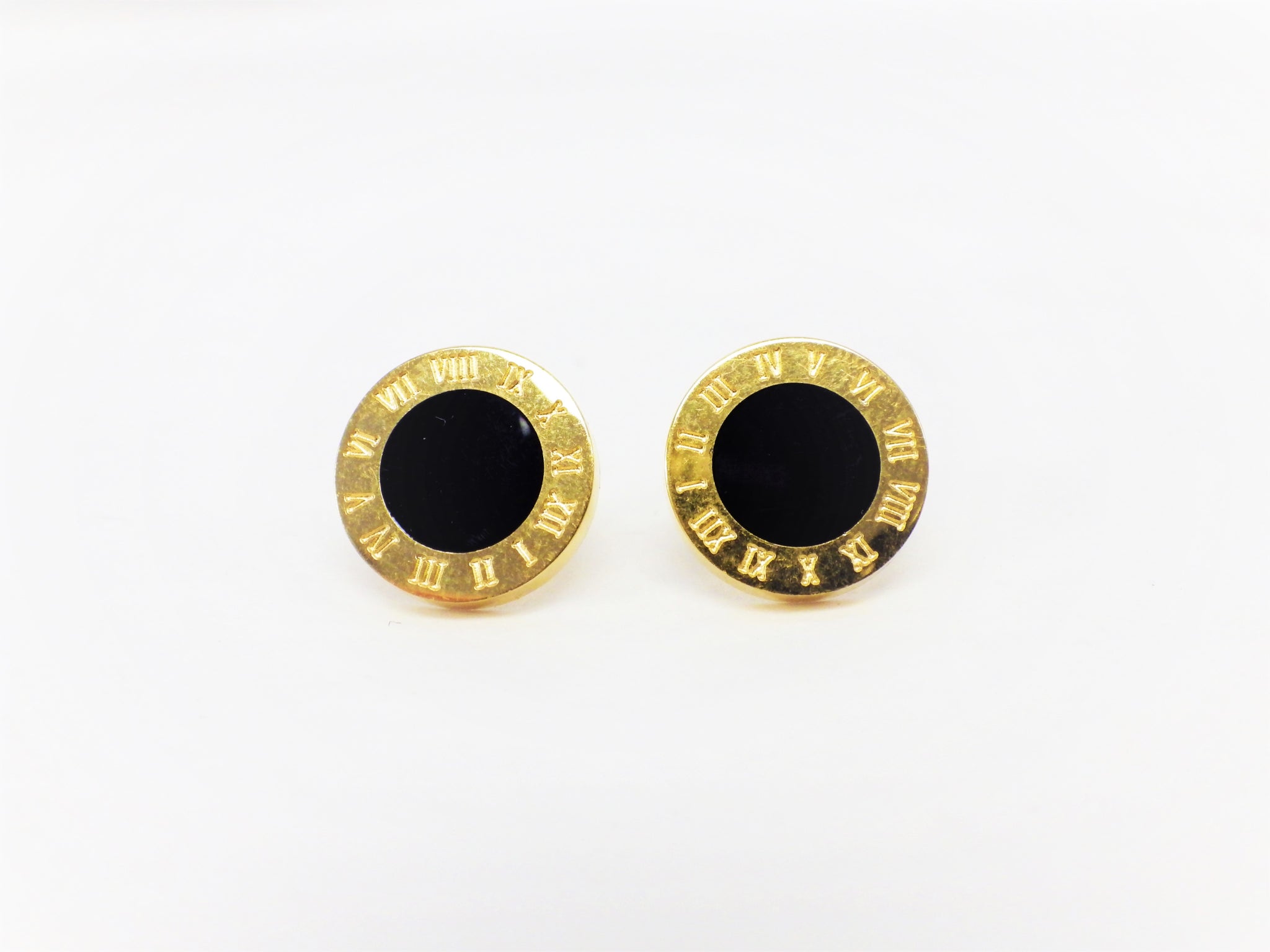BO petites rondes or et noir chiffres romains - Rouge Inox