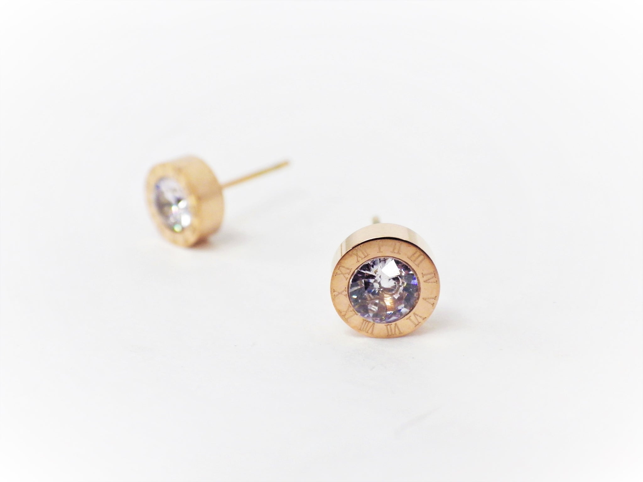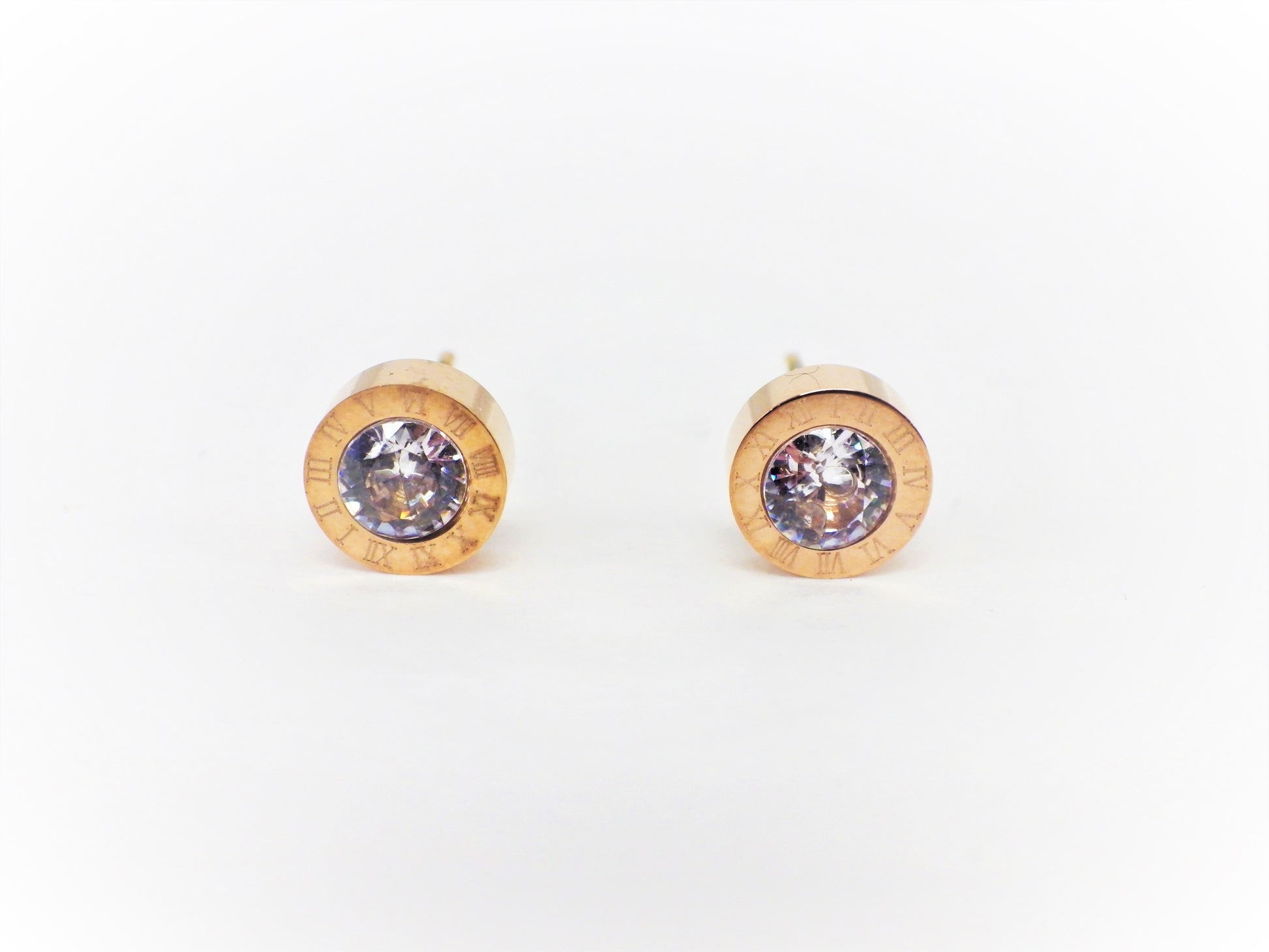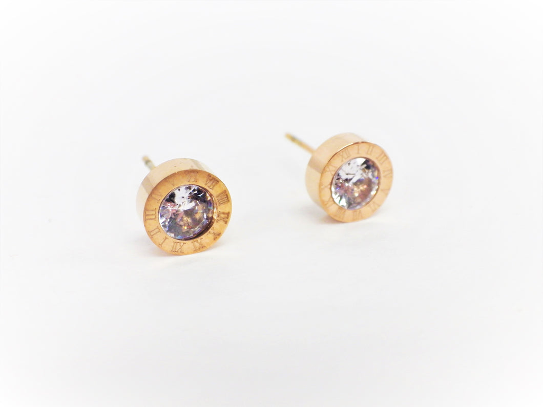 BO petites rondes or rose cristal chiffres romains - Rouge Inox