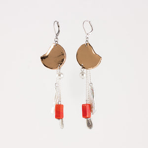 Matière : étain, verre, perle plaqué bronze et attache d'acier inoxydable