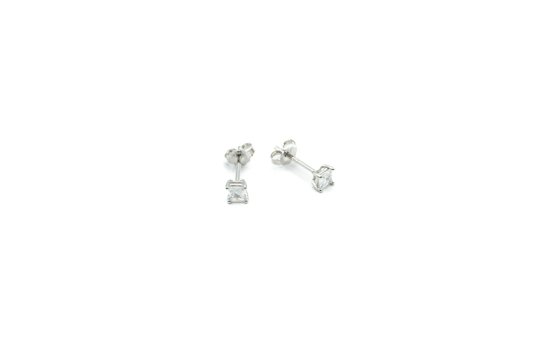 Boucles d'oreilles - Carré 3.5mm - Avril (Diamant) - Rouge Argent 9.25