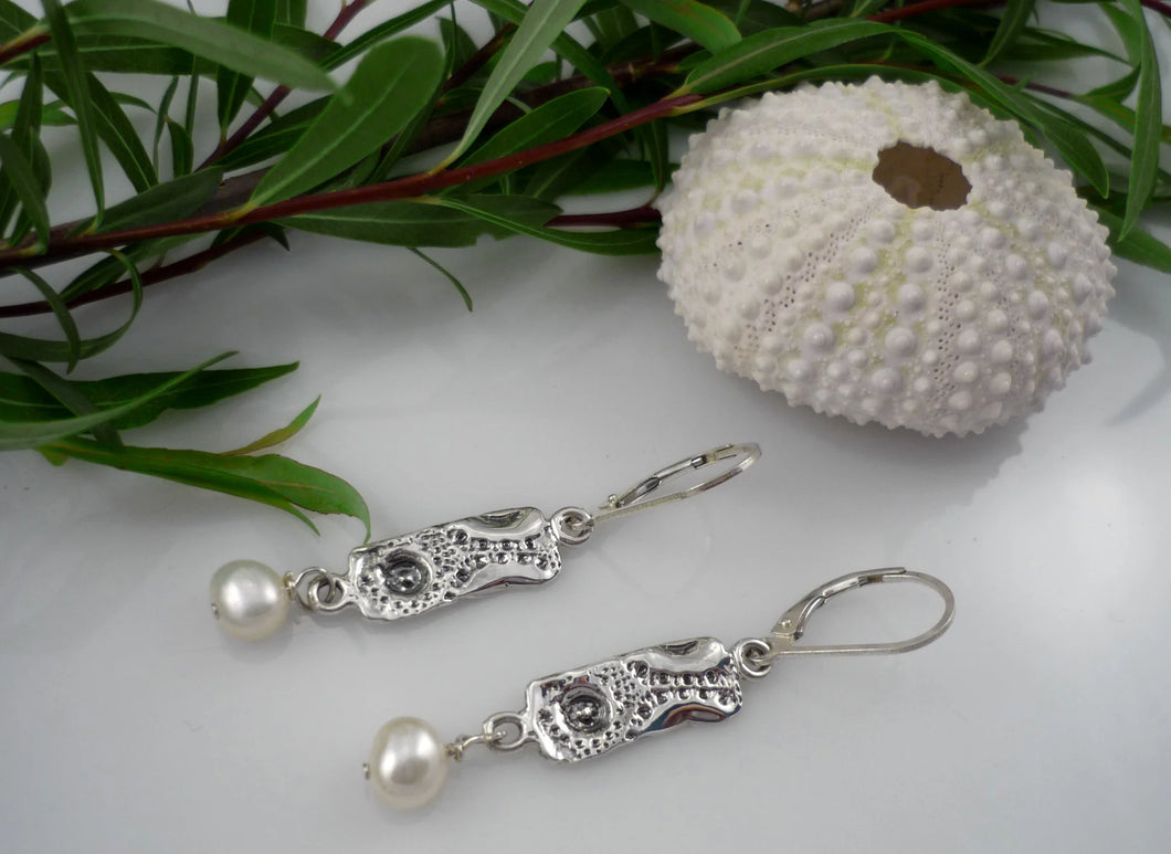 Boucles d'oreilles FLEUR DE MER, perle d'eau douce - argent sterling - Marie-Ève Bordeleau