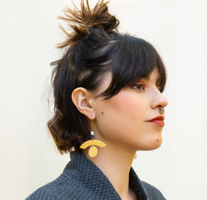 Boucles d'oreilles faites de laiton, de billes artisanales et/ou de pierres semi précieuses.