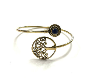 Bracelet de laiton ajustable au poignet agrémenté d'une véritable pierre.