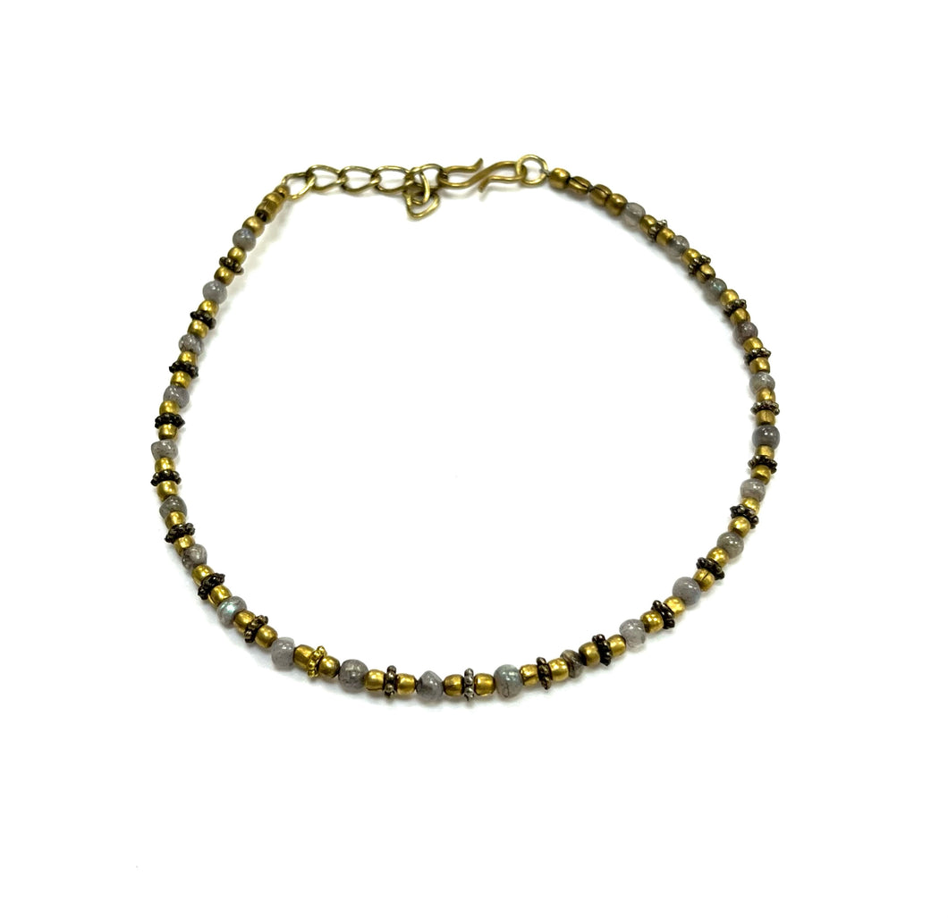 Bracelet de laiton et pierres véritables. Produit d'Inde. Le type d'attache peut varier.