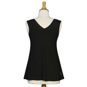 Voici une version très pratique de camisole réversible. En effet, elle se porte des 2 côtés: avec le col en V ou le col arrondi! Vous aimerez sa coupe semi-ajustée et le fait que l'on puisse les porter avec toutes nos jupes et capris! Aussi disponible en noir et en imprimés.