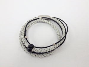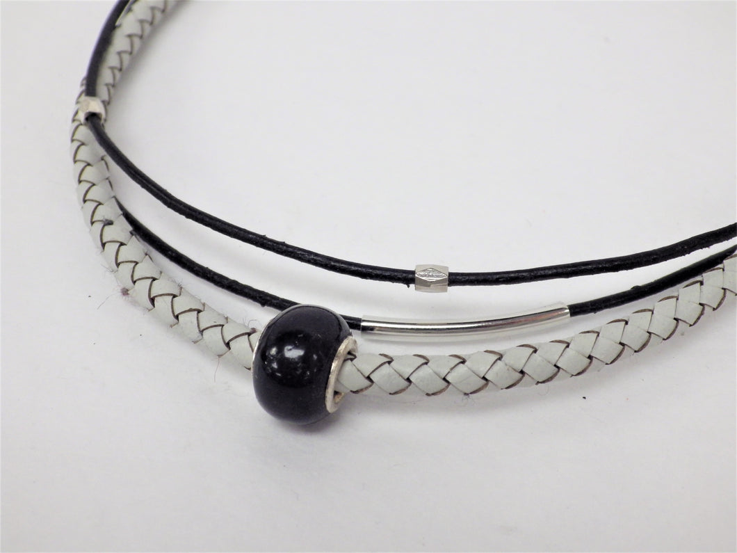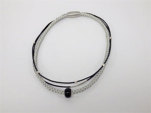 Collier/Bracelet noir, tresse ivoire, boule noire - MJ Bijoux