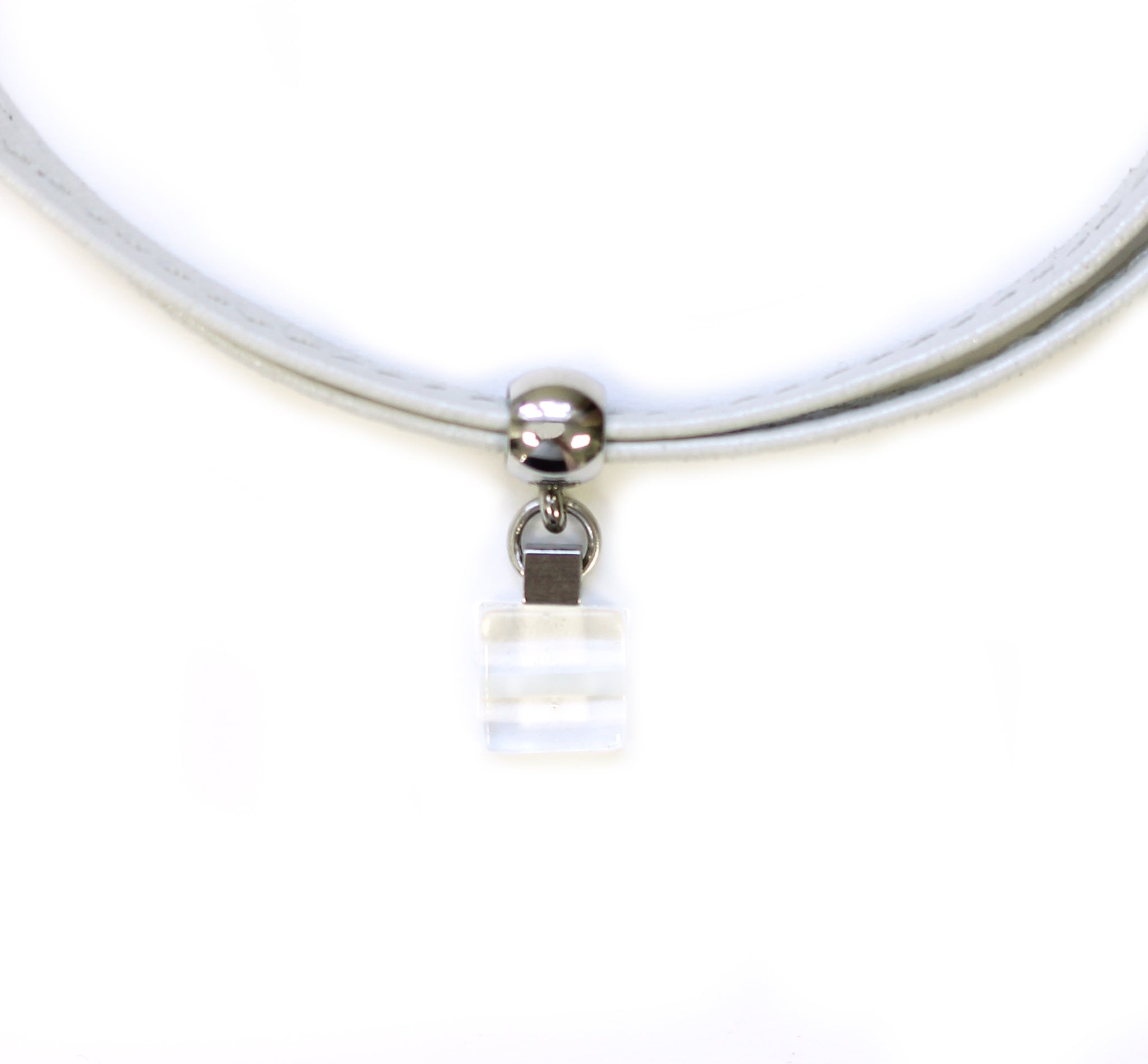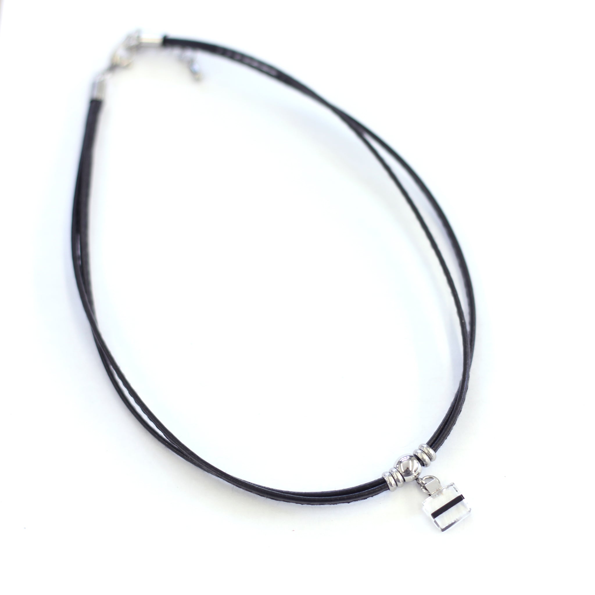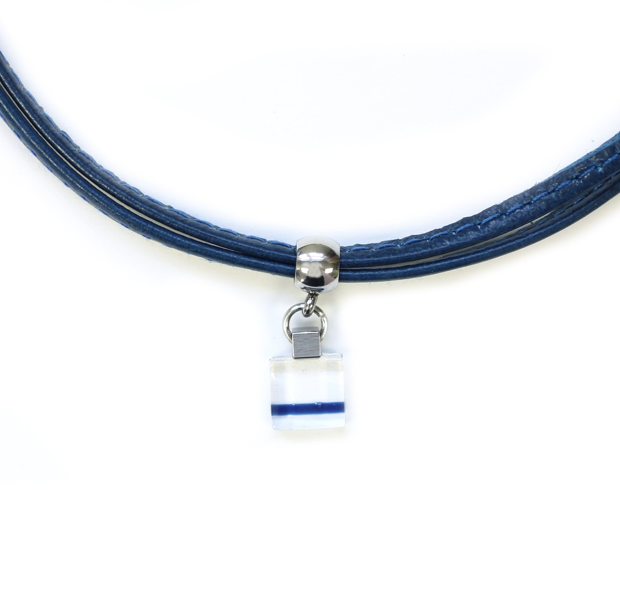 Collier en cuir véritable avec pendentif en verre et acier inoxydable. Ajustable.