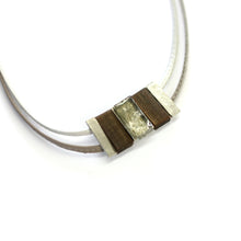 Collier en cuir véritable avec pièce d’étain, de bois et de verre.