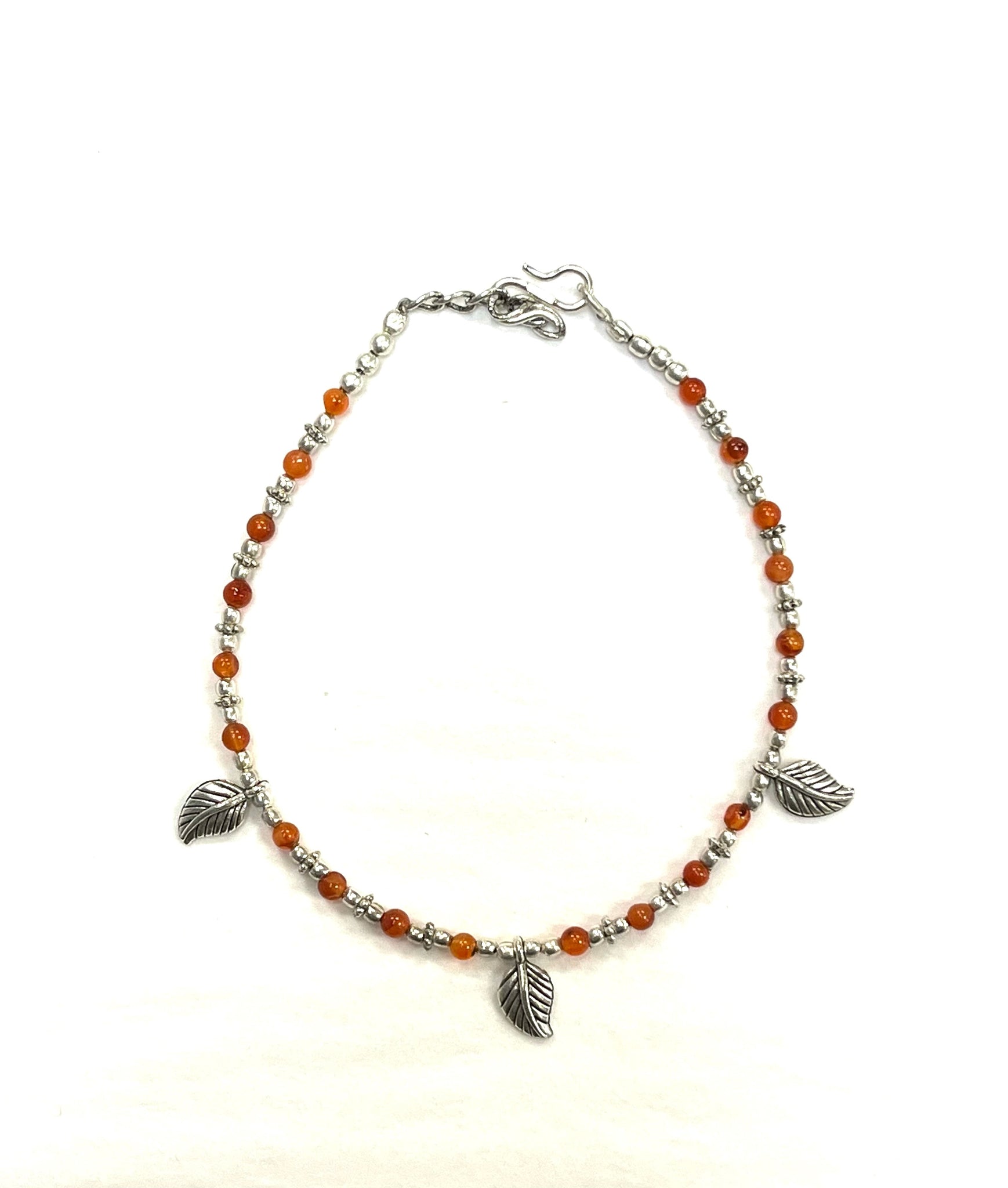 Copie de Bracelet de cheville RI35 - Feuille d'argent cornaline - Rouge Import