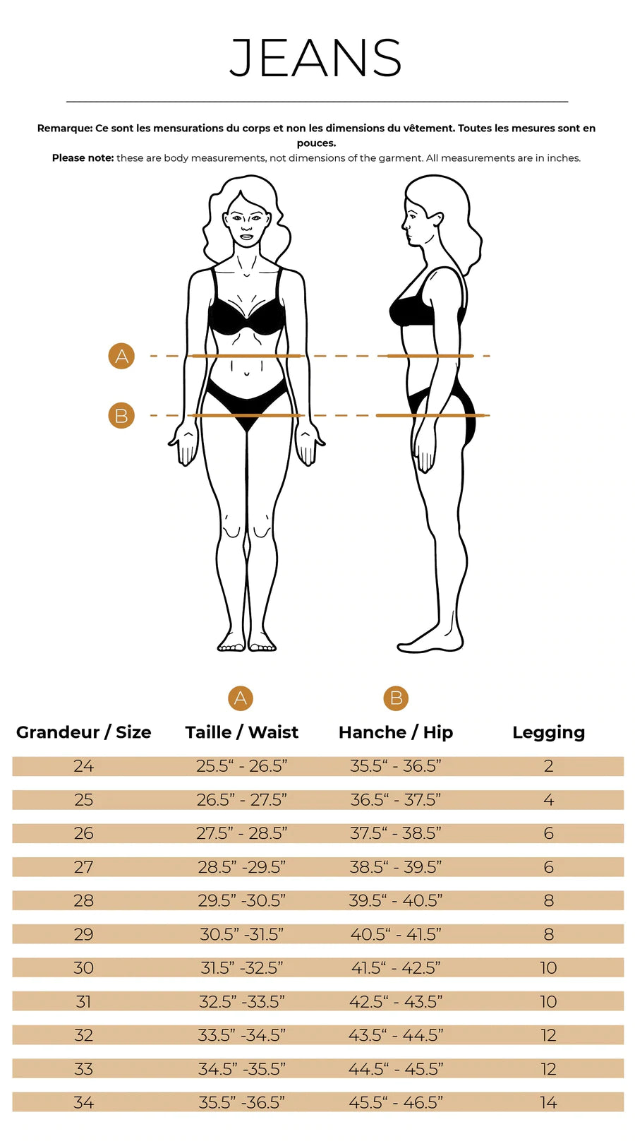 - Classique, 5 poches (3 poches devant incluant un poche-monnaie, 2 poches au dos)