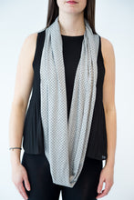 Foulard infini en bambou gris pâle avec pois noirs.