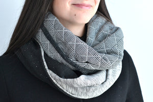 Foulard infini patchwork carreau noir et blanc - Baluchon